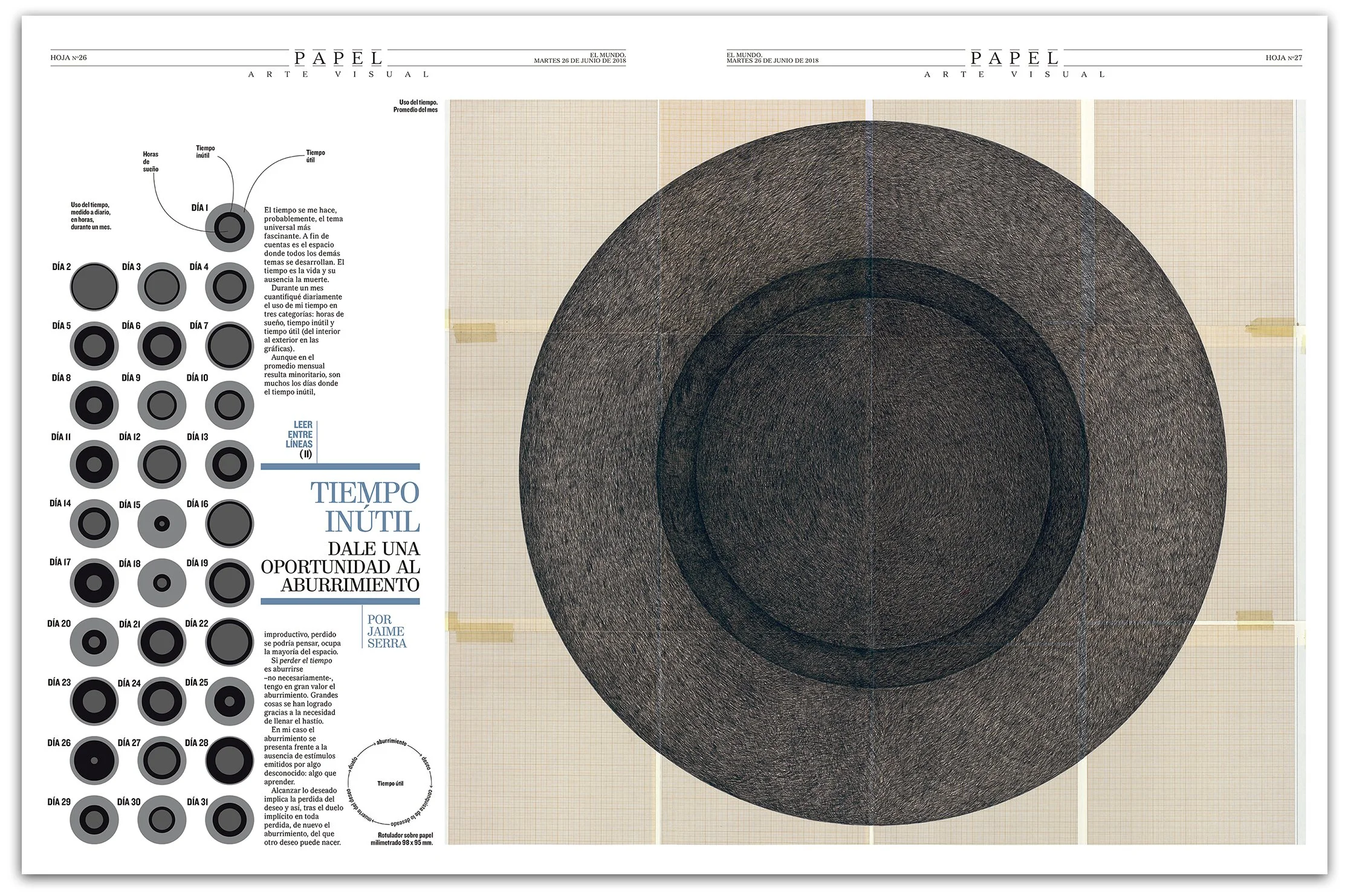 Visualización del tiempo de un mes a partir de tres criterios de uso: útil, inútil y sueño.