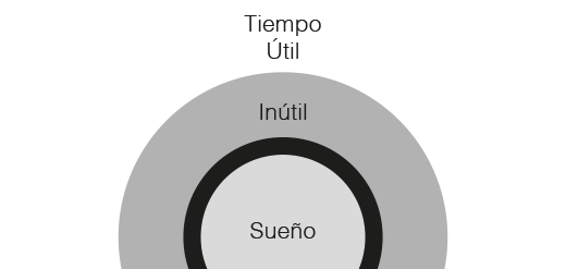 Distribución del tiempo a partir de tres criterios de uso, durante enero del 2014: útil, inútil y sueño. Del exterior al interior.