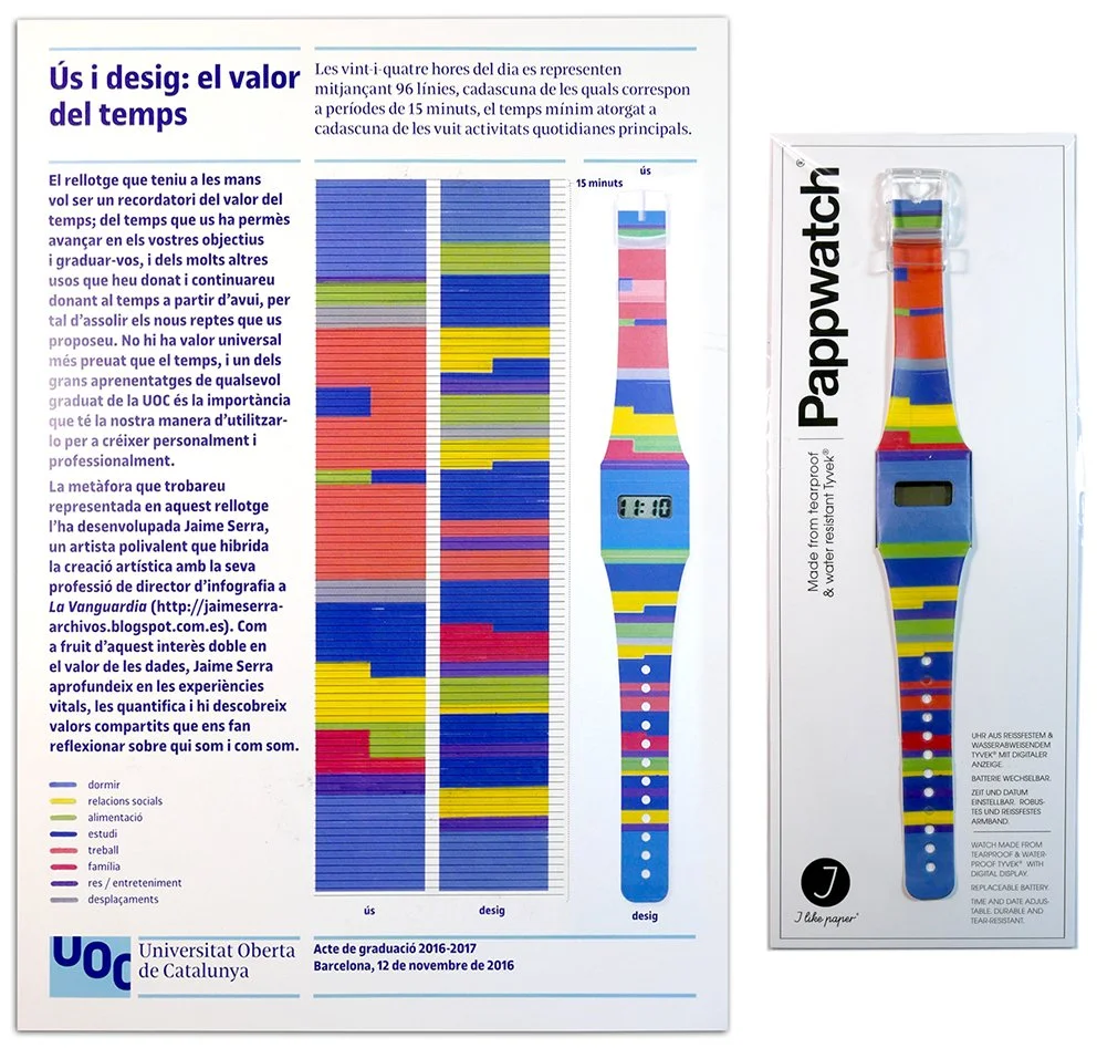 Aplicación de la visualización a un reloj que la UOC entregó a todos los graduados del curso 2016/2017